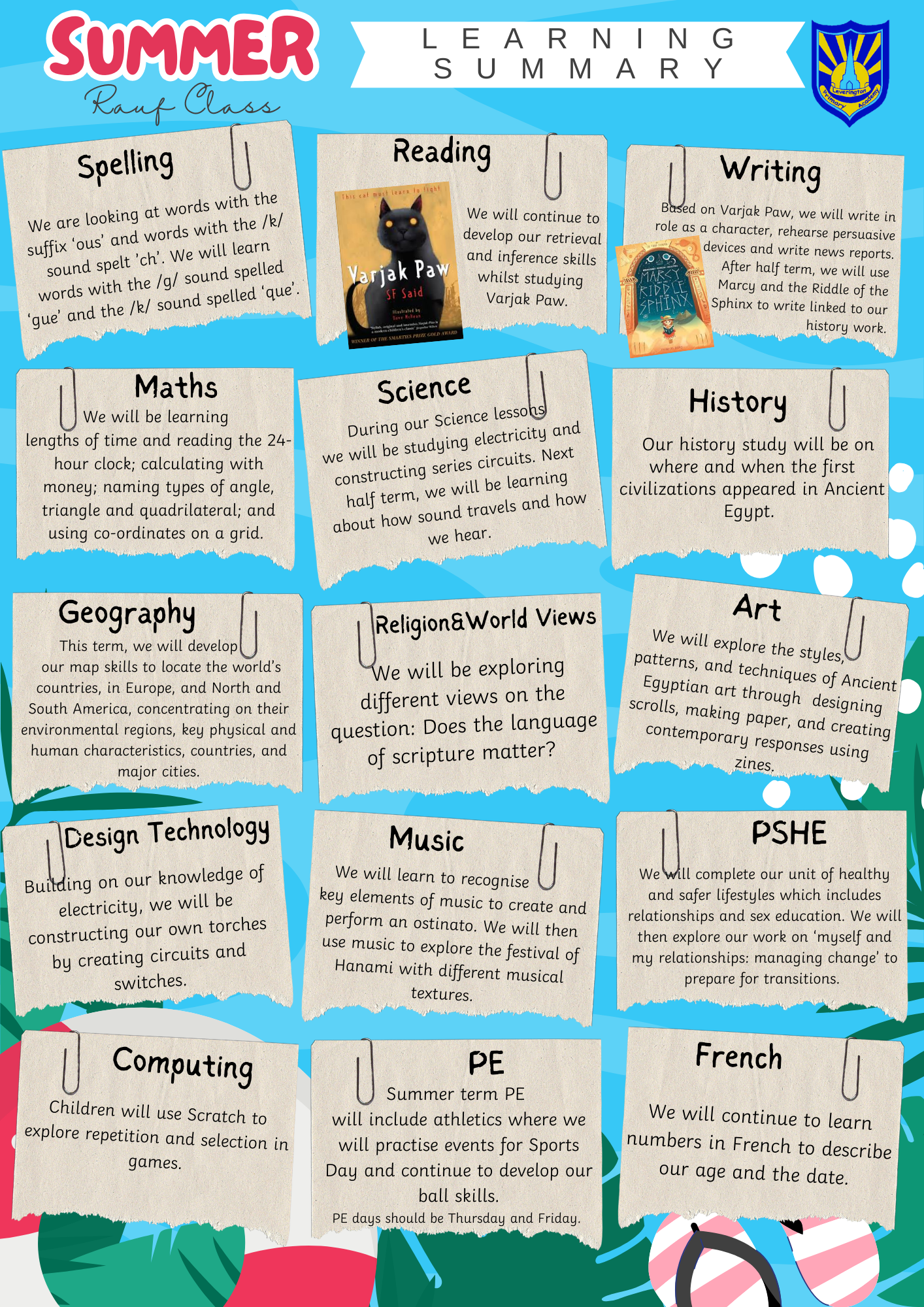 Below, you will see the learning summary which explains what we will cover in the curriculum during this term, as well as expectations for homework: