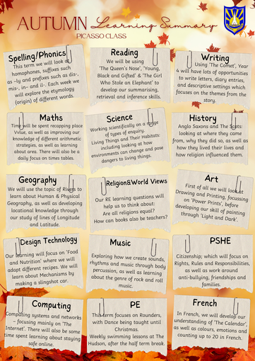 Below, you will see the learning summary which explains what we will cover in the curriculum during this term, as well as expectations for homework: